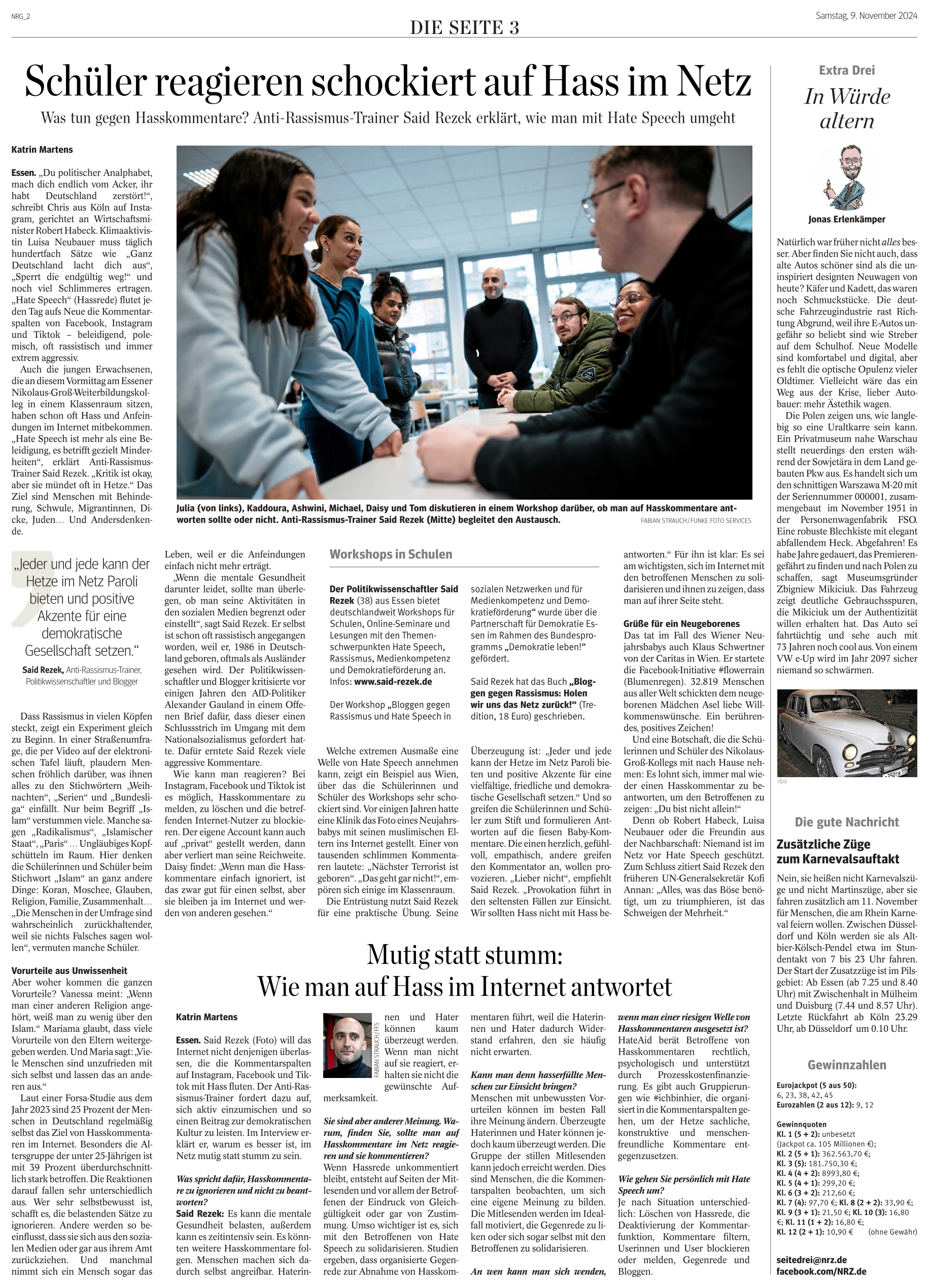 Schüler reagieren geschockt auf Hass im Netz, NRZ, 9.11.2024